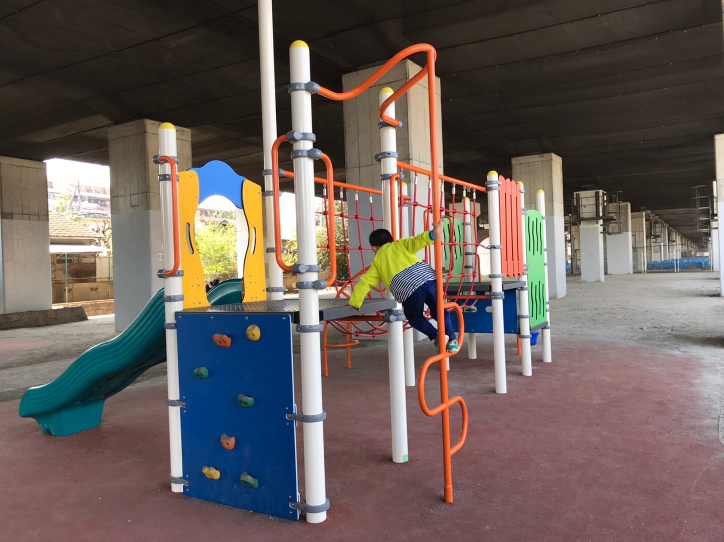 是政公園 | 是政2丁目10番地 | 高架下なので、雨が降っていても遊べます。 トイレあり。 |