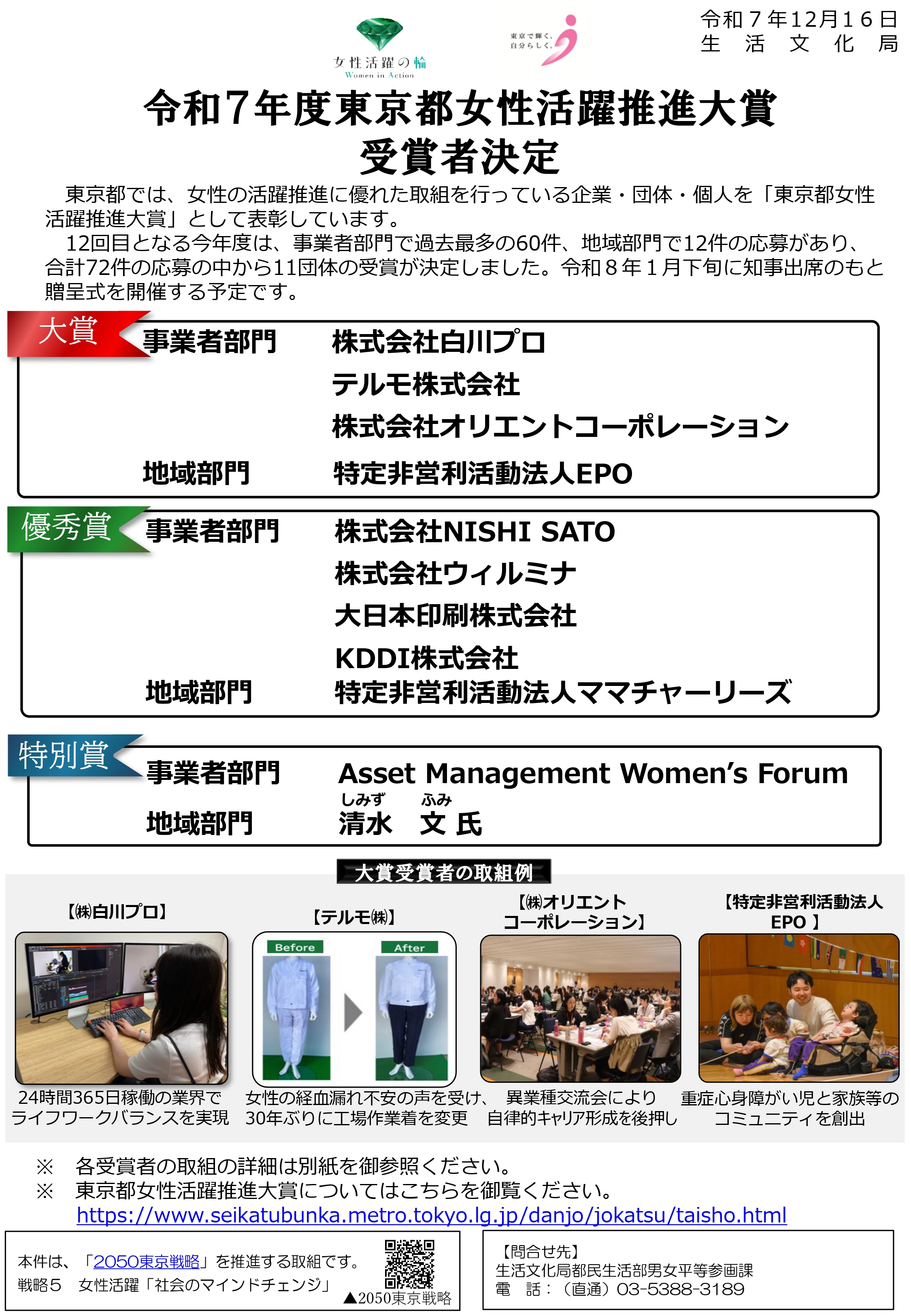 東京都女性活躍推進大賞〈地域部門・優秀賞〉受賞のご報告